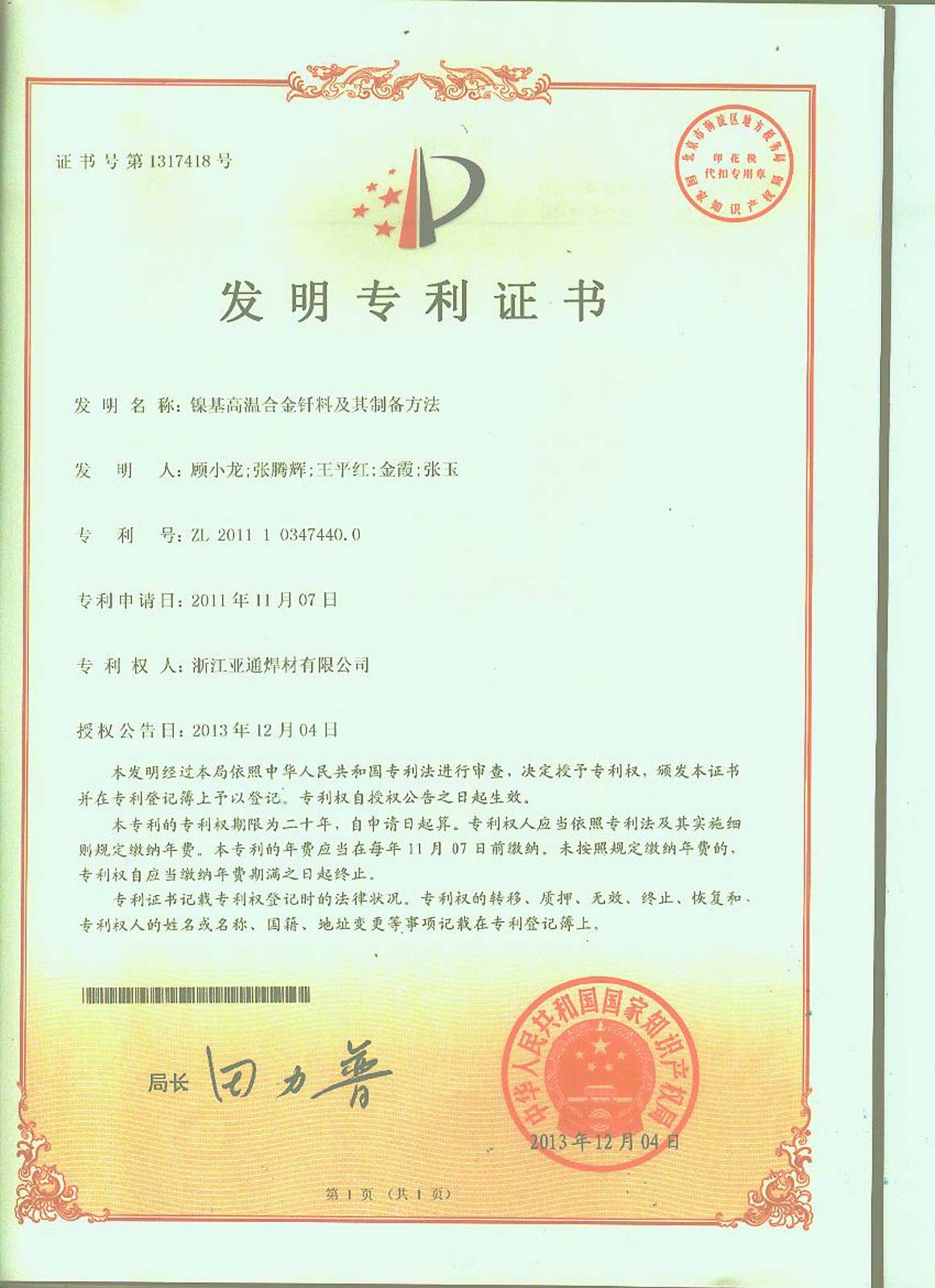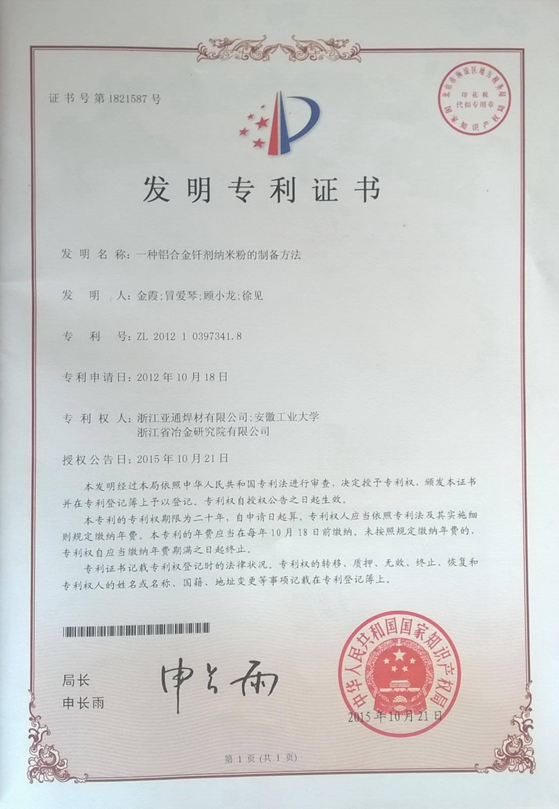 2016年4月,經省科技廳、省發改委、省經信委、省財政廳批準,浙江亞通新材料股份有限公司作為先進釬焊材料產業技術創新的綜合試點單位,組建浙江省亞通先進釬焊材料重點企業研究院,2020年12月建成并對外開放。
